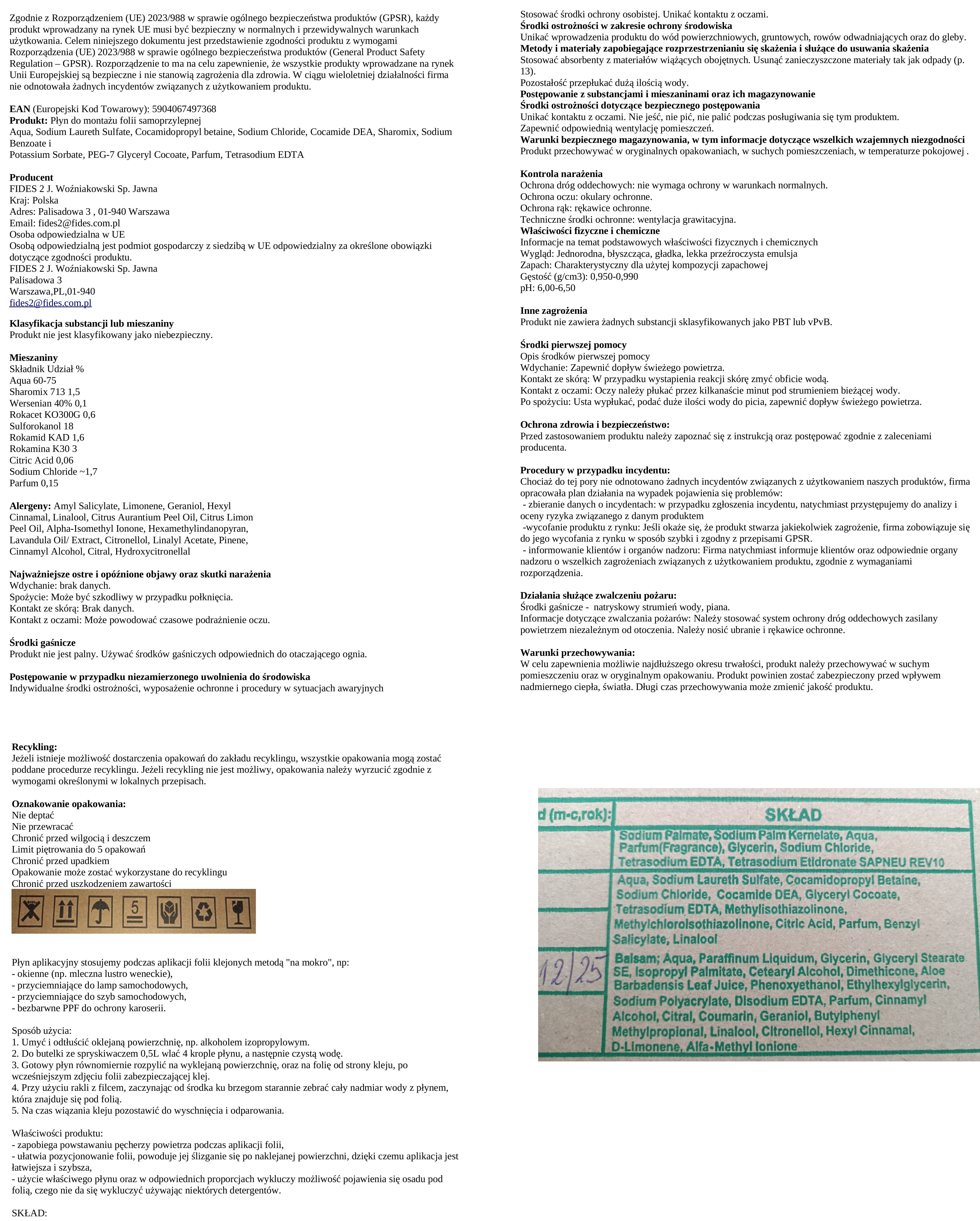 - ułatwia pozycjonowanie folii, powoduje jej ślizganie się po naklejanej powierzchni, dzięki czemu aplikacja jest łatwiejsza i szybsza,